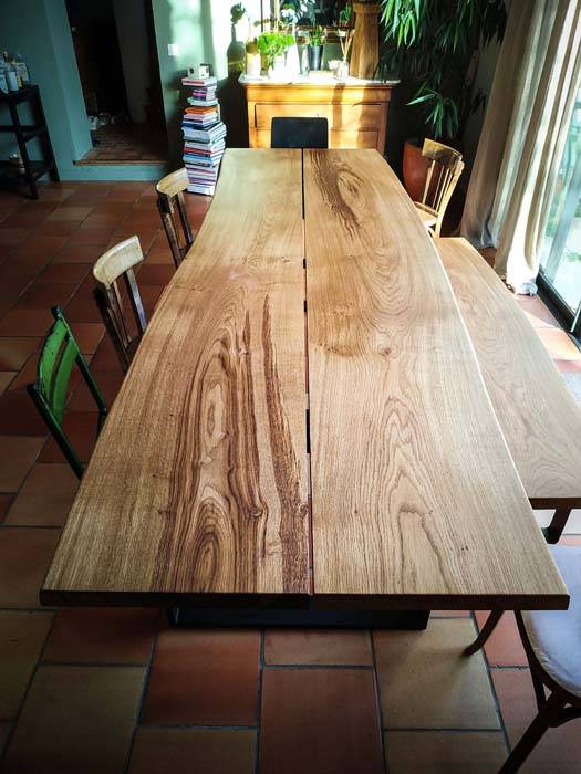 Dans notre atelier du Var, nous réalisons des pièces uniques en travaillant des essences de bois français : chêne, frêne, olivier, acacia, érable, châtaignier, noyer, merisier, et quelques résineux comme sapin, pin et douglas.